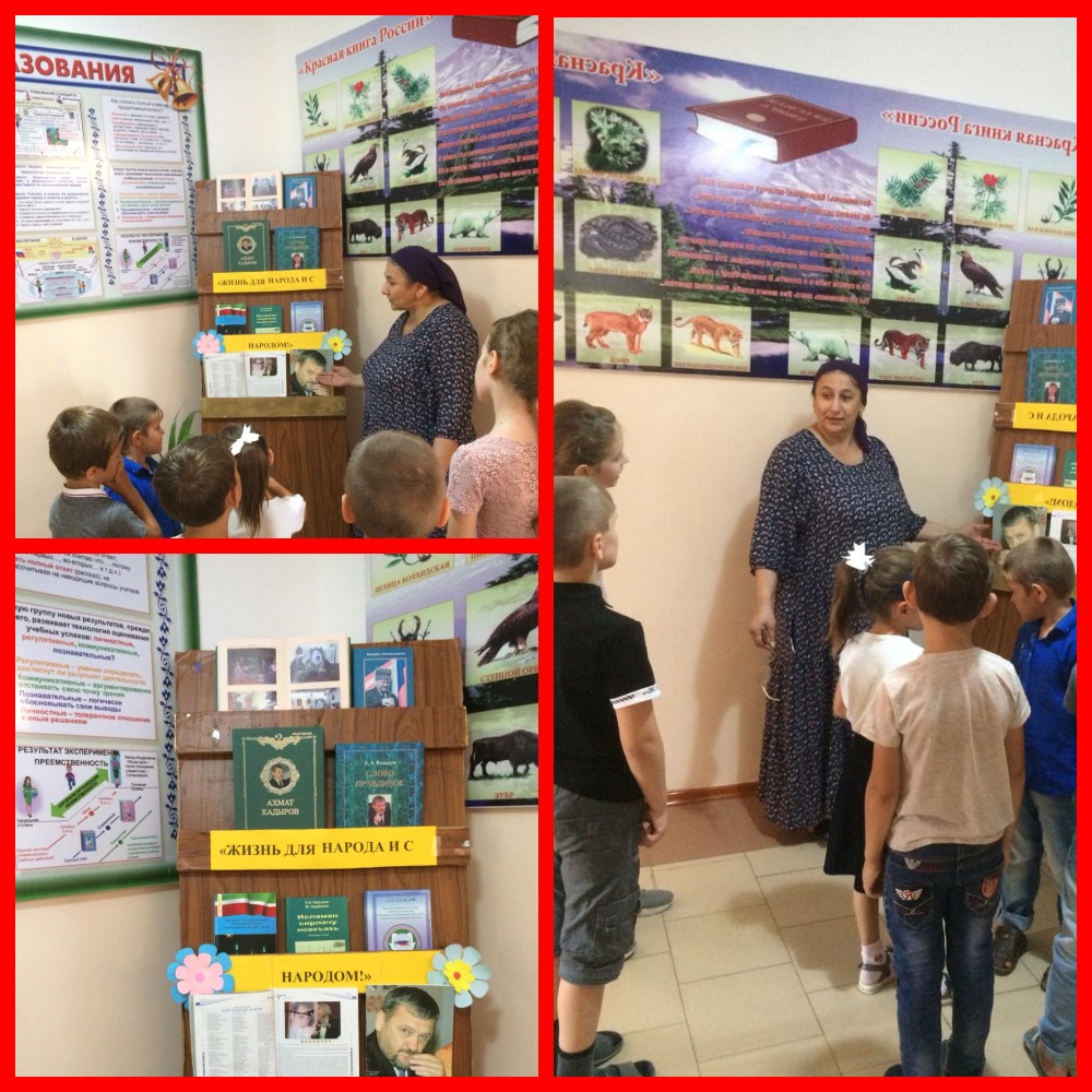 организованная библиотекарем Юхиговой М.А. На экспозиции представлены труды, описывающие жизненный путь Первого Президента ЧР, Героя России Ахмата Хаджи Кадырова. Это книги таких авторов как: Альви Каримова, А.А. Кадырова, Х-А. Кадырова, Заурбекова М.