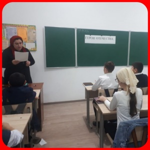Проведены следующие мероприятия, посвященные Дня героев Отечества: Патриотический час, посвященный первому президенту Чеченской Республики, герою России А-Х. Кадырову «Героями не рождаются, героями становятся» (6-7 классы); уроки, посвященные Дню Героев Отечества: «Героические страницы истории Отечества» (1-11 классы); классные часы: «Герои Отечества» (5-8 классы), «Победные дни России» (8-9 классы). «Память о героях не уйдет в забвенье» (9-11 классы). 5 декабря проведена викторина «История Отечества: события, люди» среди учащихся 10-11 классов. Классный руководитель Дакуева Лайла Зайндиевнв провела диспут старшеклассников «Служить Отечеству суждено тебе и мне».