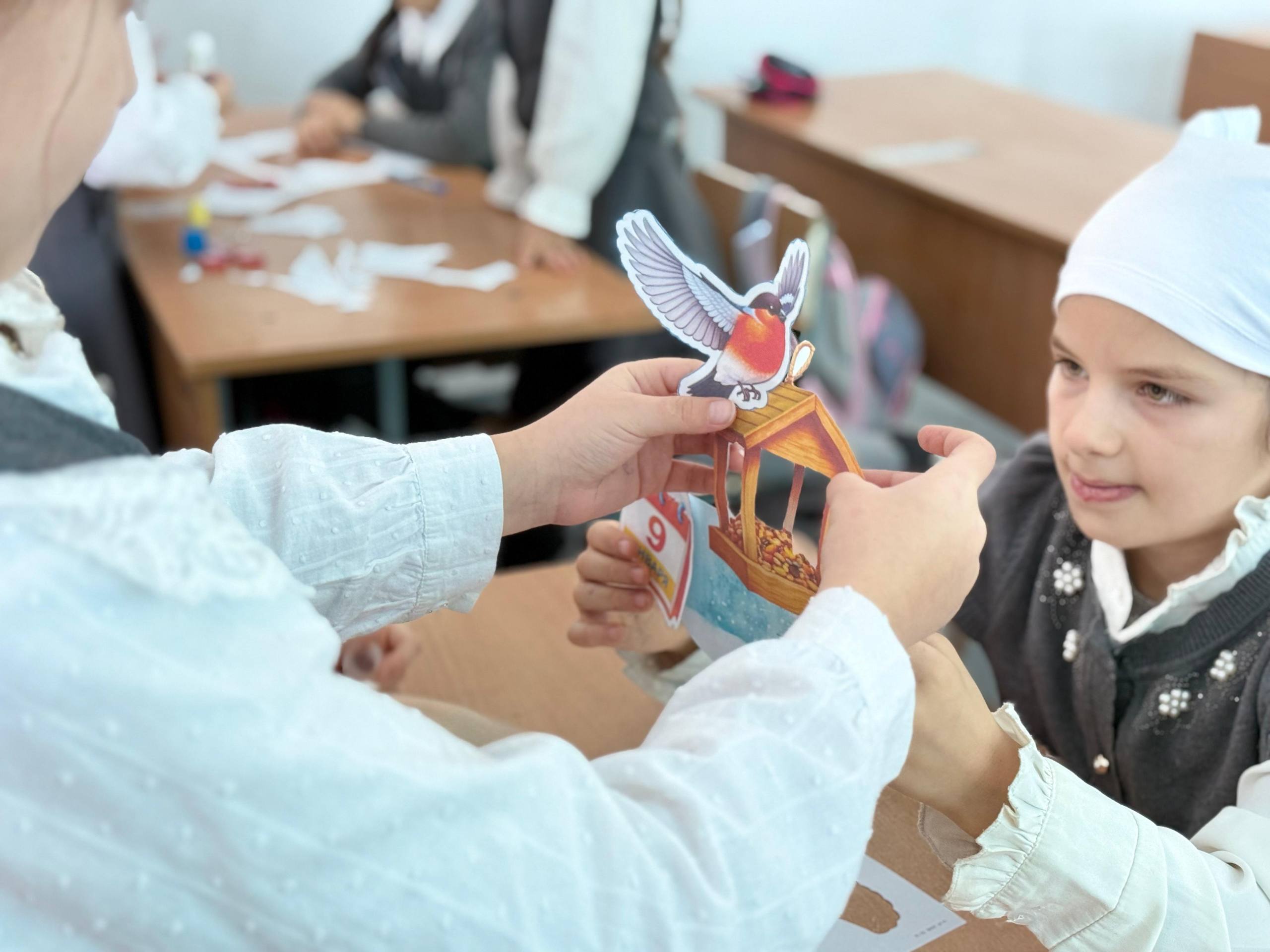 На классном часе был организован мастер-класс, где дети проявили свою творческую фантазию, используя цветную бумагу, клеевые материалы и различные украшения.